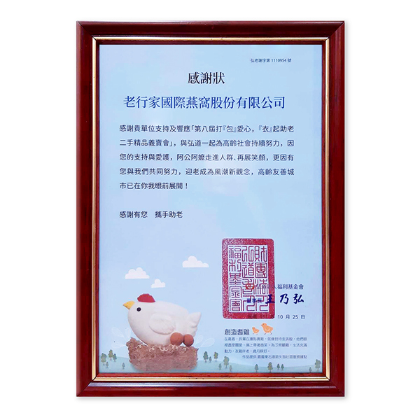 老行家支持贊助「弘道老人-第八屆打『包』愛心,『衣』起助老義賣會」活動