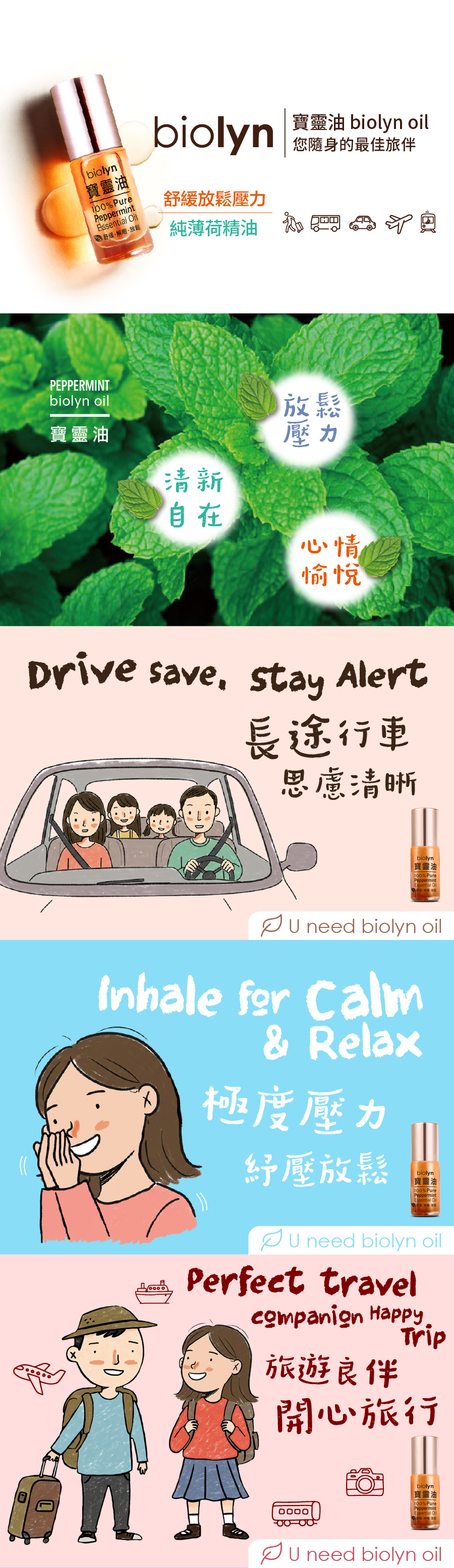 biolyn寶靈油從數十種薄荷中嚴選出價值最高的「胡椒薄荷」蒸餾萃取,並通過GCMS檢測和產地認證,含豐富薄荷醇及薄荷酮,塗於紙巾上運用,或透過嗅吸持續放鬆疲累緊繃心情,清新舒暢如夏夜晚風的微涼氣息,可安撫釋放每日身心靈累積壓力,還可於睡前營造最舒適的入眠心情,樂享恬適舒緩的一場好眠。