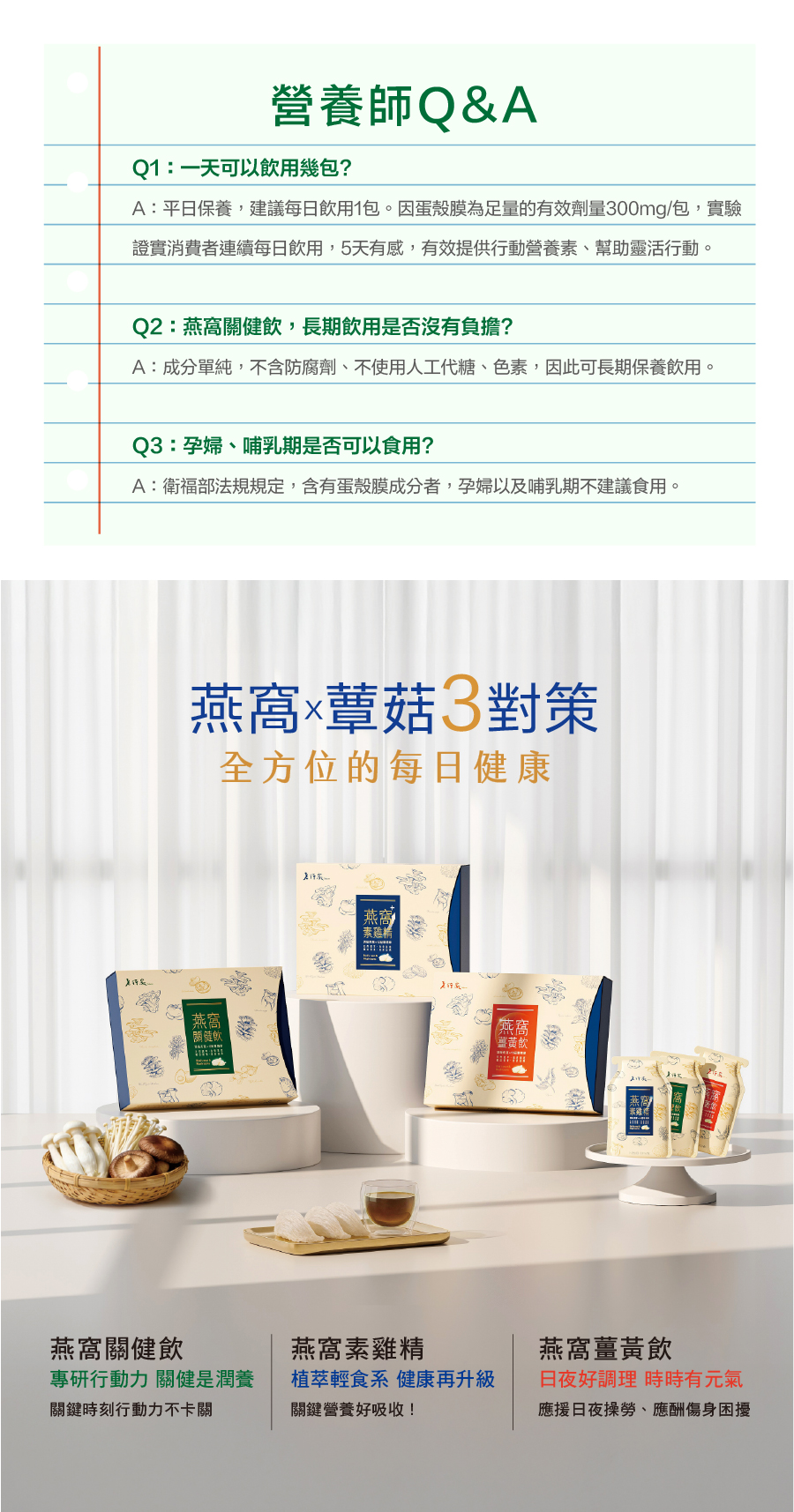 「老行家燕窩關健飲」以高溫高壓二次鮮萃10種菇蕈精華之「多醣體萃取液」,搭配含珍貴EGF與天然燕窩酸(唾液酸)的專利「燕窩水解物」提供全方位滋養為基底。